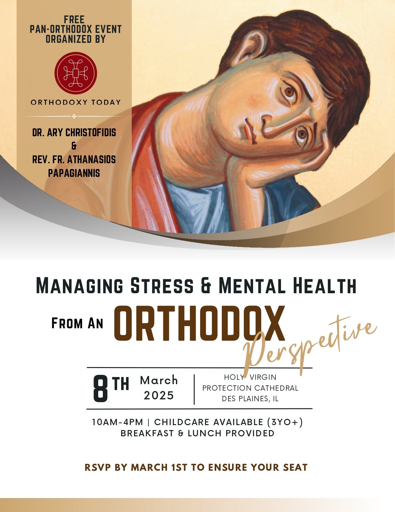 On the first Saturday of the Great Lent, you will have an opportunity to dive into the topic of Stress & Mental Health from the Orthodox Perspective. Our esteemed guest speakers, Dr. Ary Christofidis and Father Athanasios Papagiannis, will unravel the topic from both the professional and spiritual perspectives. Following each speaker’s presentation, you will break out into discussion groups, led by local clergymen representing the Pan-Orthodox churches of Chicagoland.